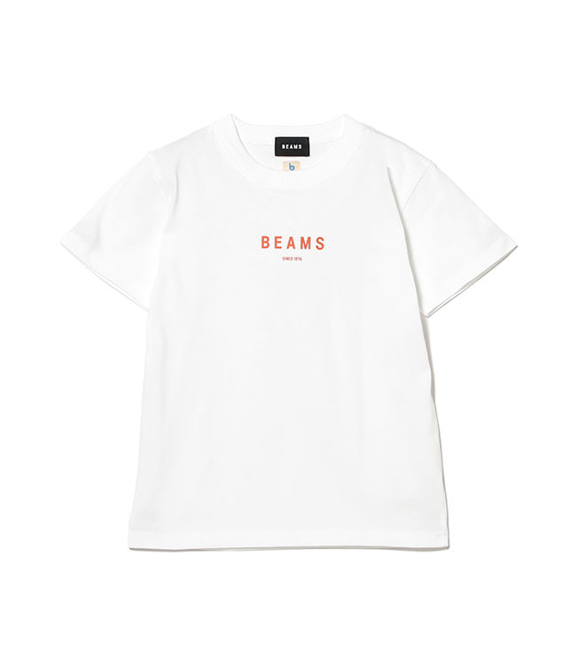 ロゴをフロントに配したロングセラーTシャツのキッズサイズモデル。〈BEAMS〉らしいホワイト× オレンジなど、使いやすいカラーリングを展開します。