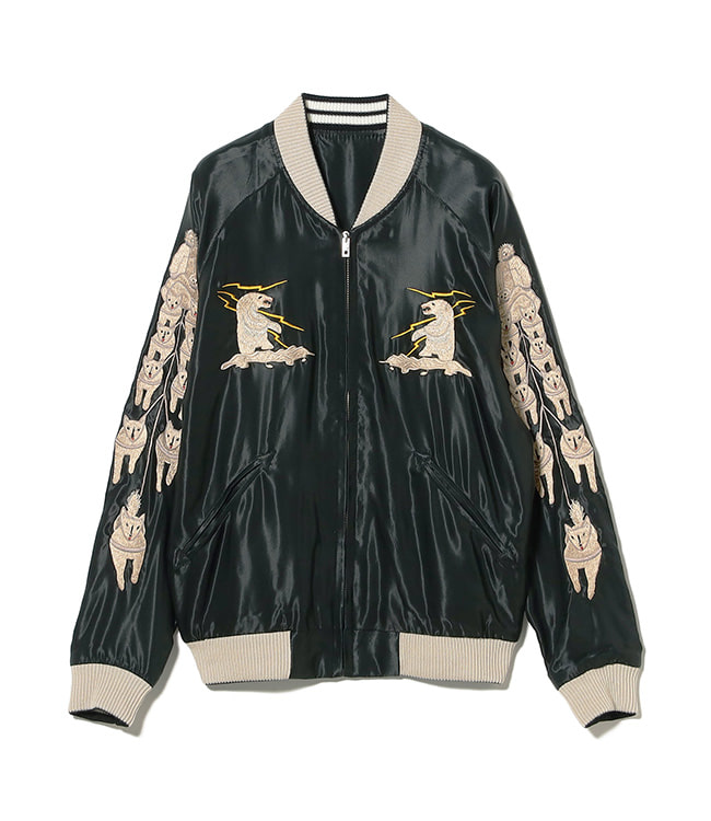 〈こども ビームス〉のために型から起こした特別なモデル。ヴィンテージで希少とされるアラスカジャンをベースに、迫力ある稲妻 × 白熊の絵柄と犬ぞり刺繍を配しました。リバーシブル仕様の裏面は着回しやすいブラックで、ポケットの内側には両ネームが施されるなど、細部にまでこだわった魅力的なアイテムです。