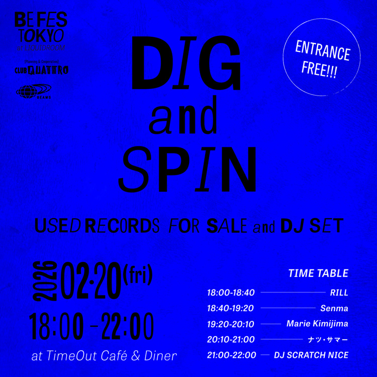 “DIG & SPIN”将作为“BE FES TOKYO at LIQUIDROOM”的开场演出,免费入场。