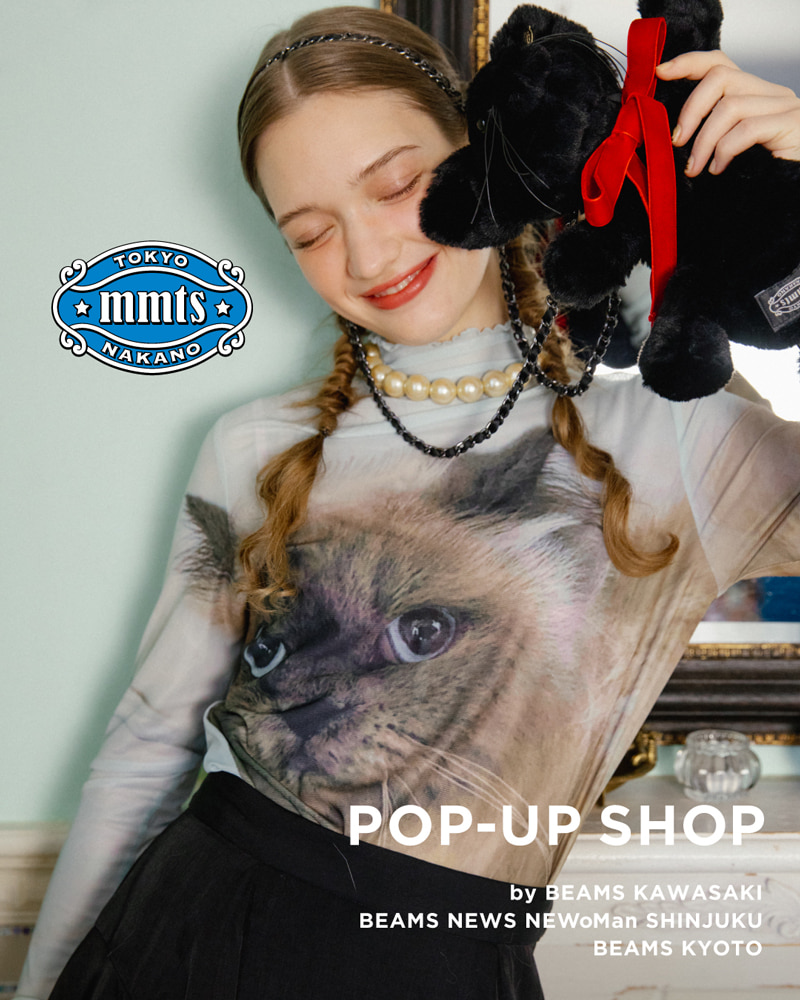 mmts(mmts)是由中川翔子(Shoko Nakagawa,又名“Shokotan”)与BEAMS共同创立的品牌。该品牌以Shokotan的个性、生活方式以及她挚爱的猫咪为灵感,推出一系列春夏新款服装及配饰。我们很高兴地宣布,mmts将在三家店铺开设快闪店,分别是“By BEAMS Kawasaki”、“ BEAMS News”和“ BEAMS Kyoto”。