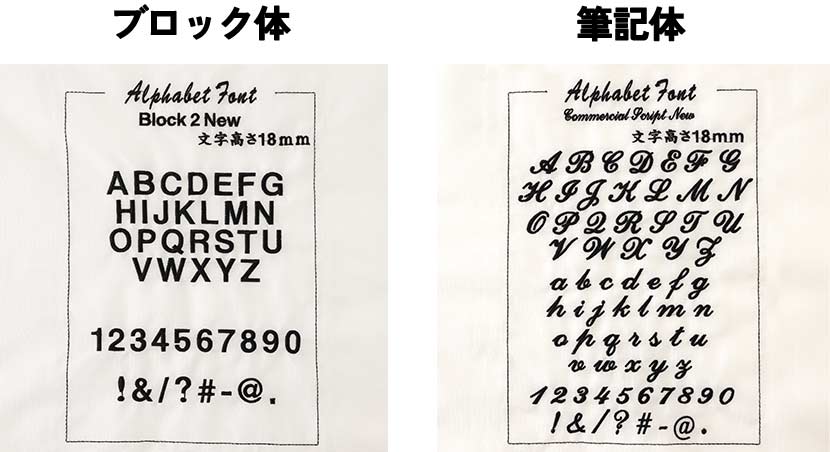 ・刺繍可能文字はアルファベット、数字、一部の記号のみです。※記号8種類「 & ! ? # @ . / - 」