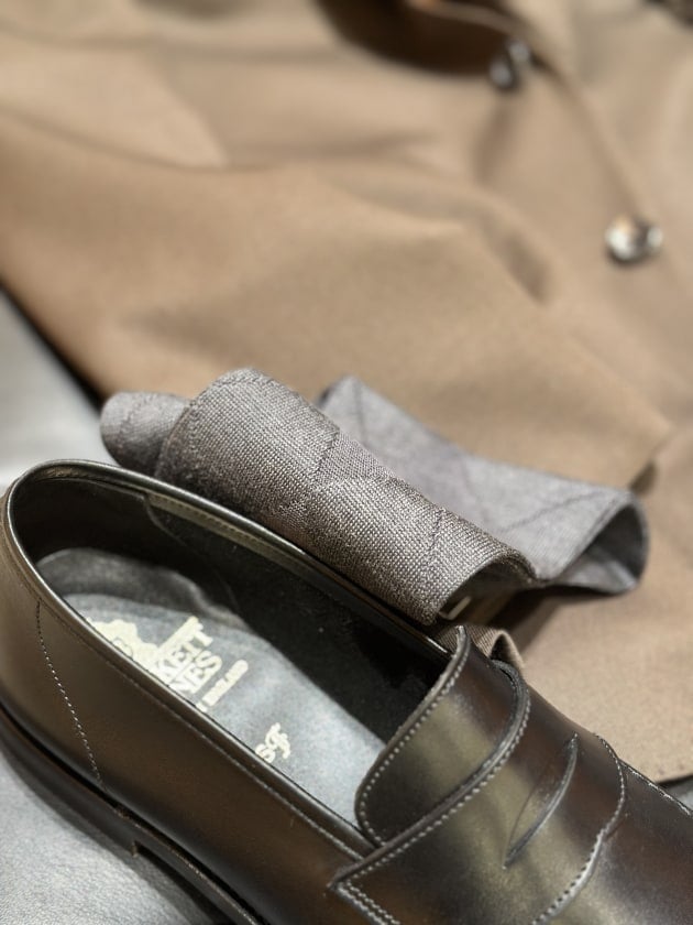 無骨、ラギッドというよりはウール生地のスーツなので過ごしラグジュアリーな雰囲気をミックスさせたほうが相性がいいのかなと!