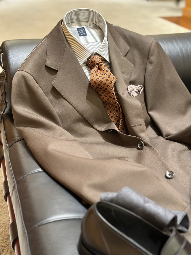 アイビーやプレッピーというアメリカントラッドな要素というよりは、東海岸の富裕層のちょっぴりリッチなスーチングをイメージしたアメリカンミックス!