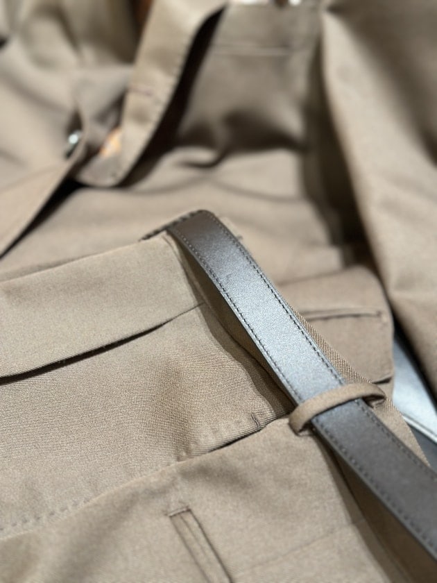 ベルトもバケッタレザーの白金のバックルでちょっぴりの無骨さを。
