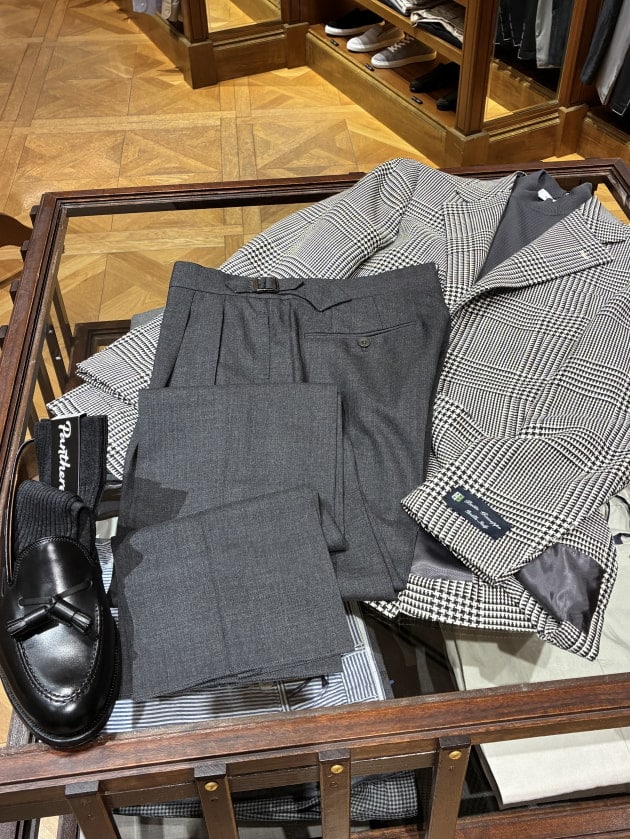 英国の質実剛健な雰囲気とイタリアっぽい洒落た丸さのある形が綺麗に融合した1着です。