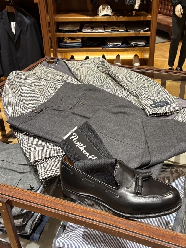 王道のグレンプレイドスーツはやはりタイドアップして楽しみたいです。
