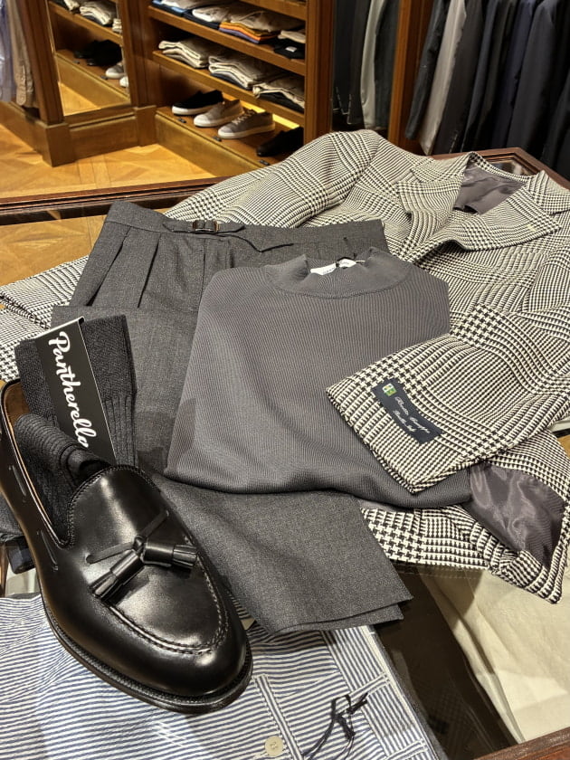 ハウンドトゥースやグレンプレイドのスーツに羽織っていたらとても素敵だなと感じます。