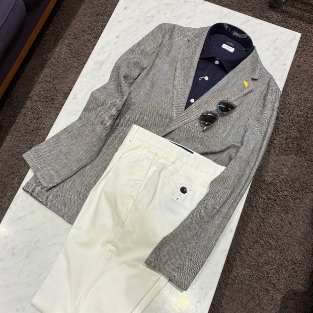 今回使用したスーツはこの二型。春夏にぴったりです。こちらもぜひお早めのチェックを!