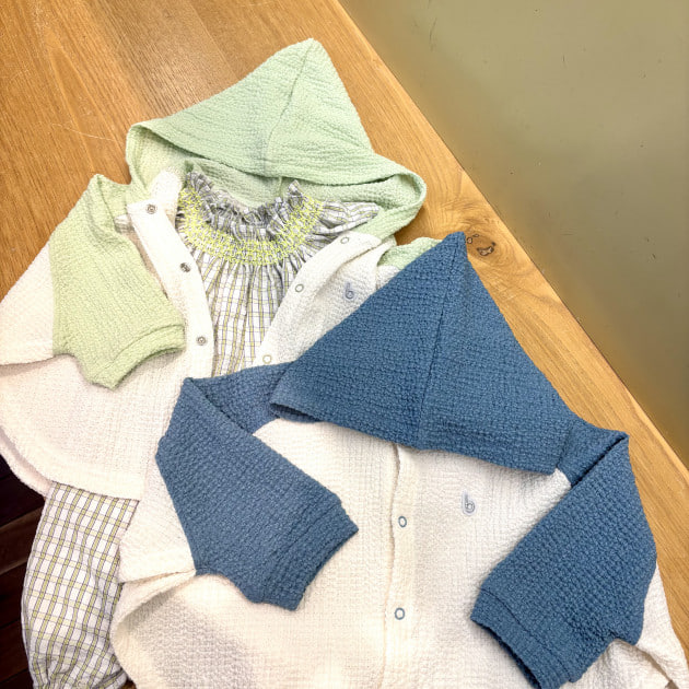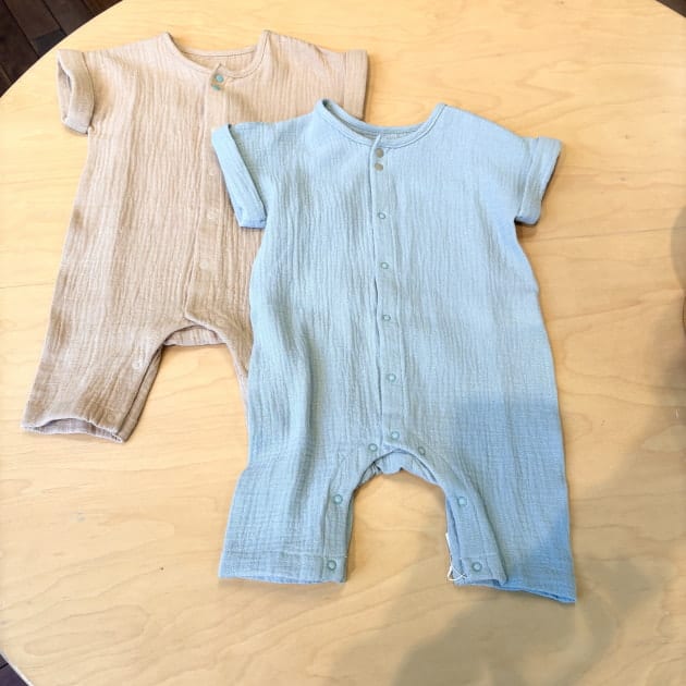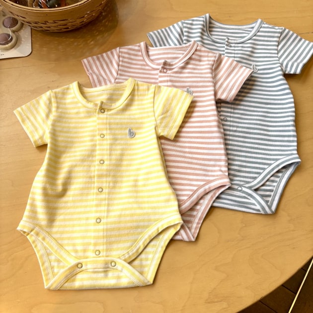 柔らかい肌触りで、前開きになっているので、首がすわっていない赤ちゃんもお着替えしやすくオススメです。