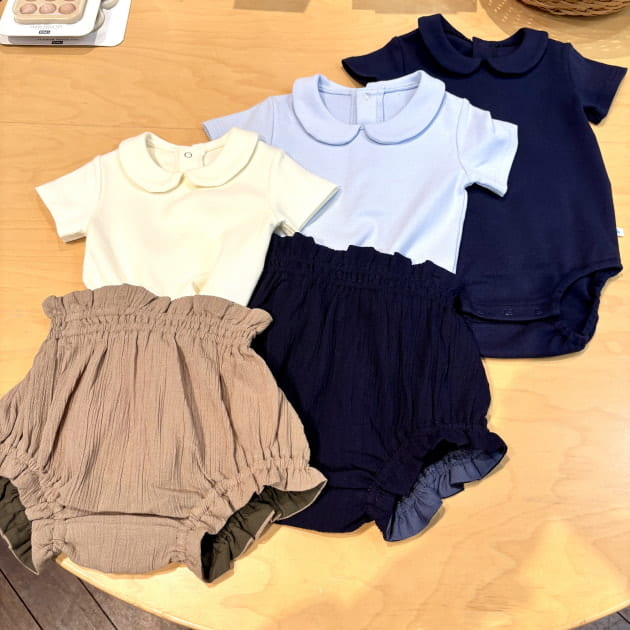 店頭でも大人気!!シンプルながら丸い襟が可愛く、男の子でも女の子でも合わせやすいアイテムです。