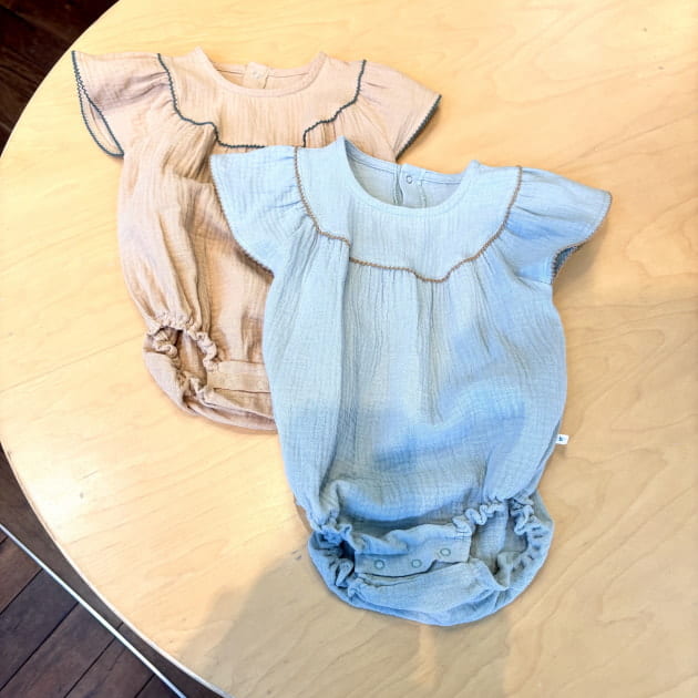 こちらもガーゼのような柔らかい肌触りで着心地抜群!袖のフリルが可愛いです。