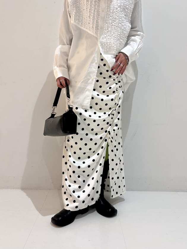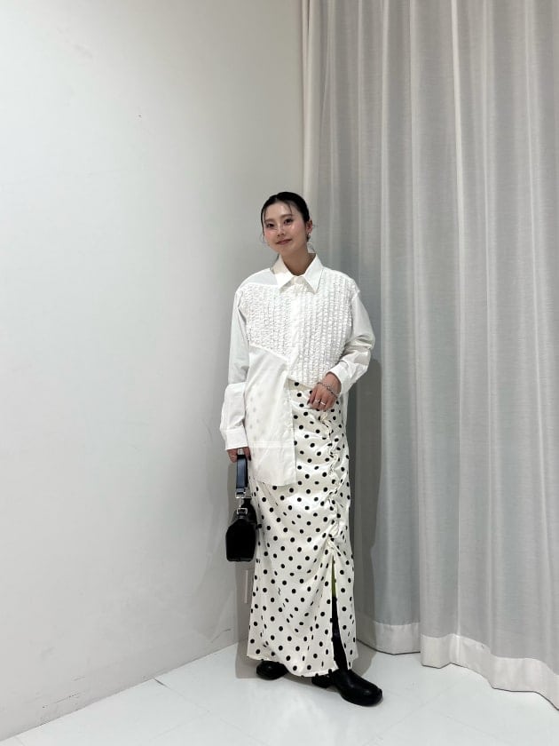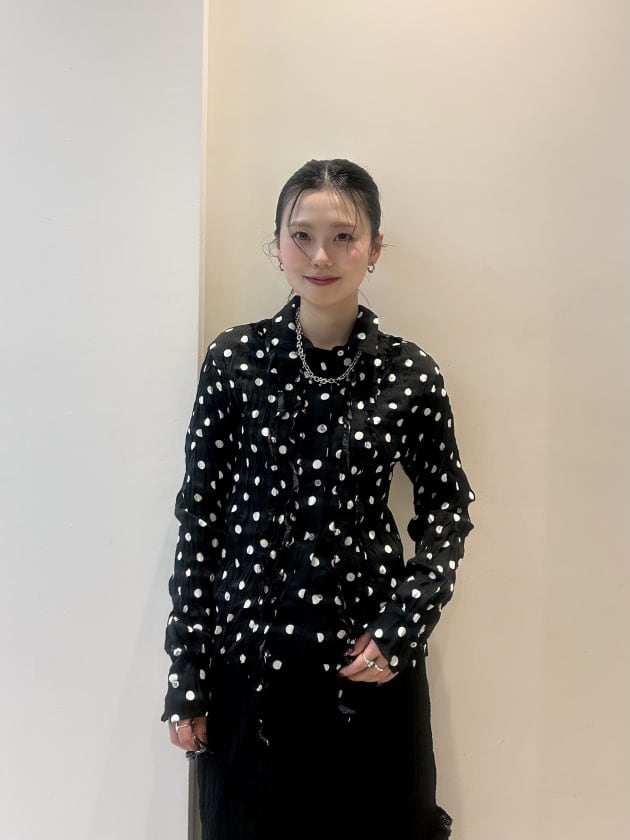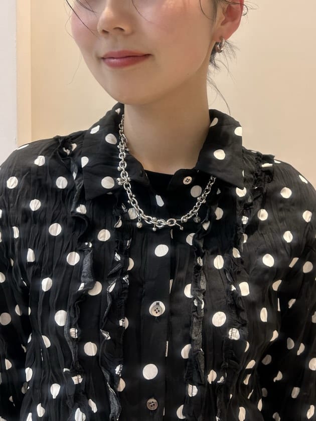 ①今季の主役!モノクロ「ドット クリンクル フリル シャツ」