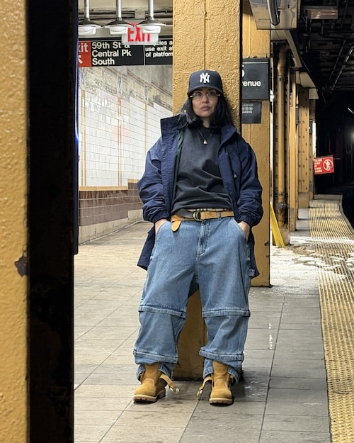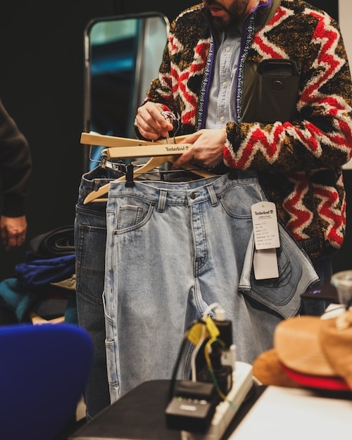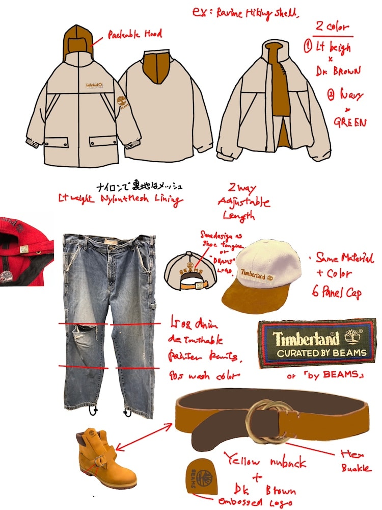 野崎:三段階で丈が切り替わるアレですよね。Y2K初頭っぽい雰囲気。『これ、いいね!』ってところから、デニムで〈Timberland〉らしい土臭さがあったらいいなって。あそこからギアが上がりましたね。