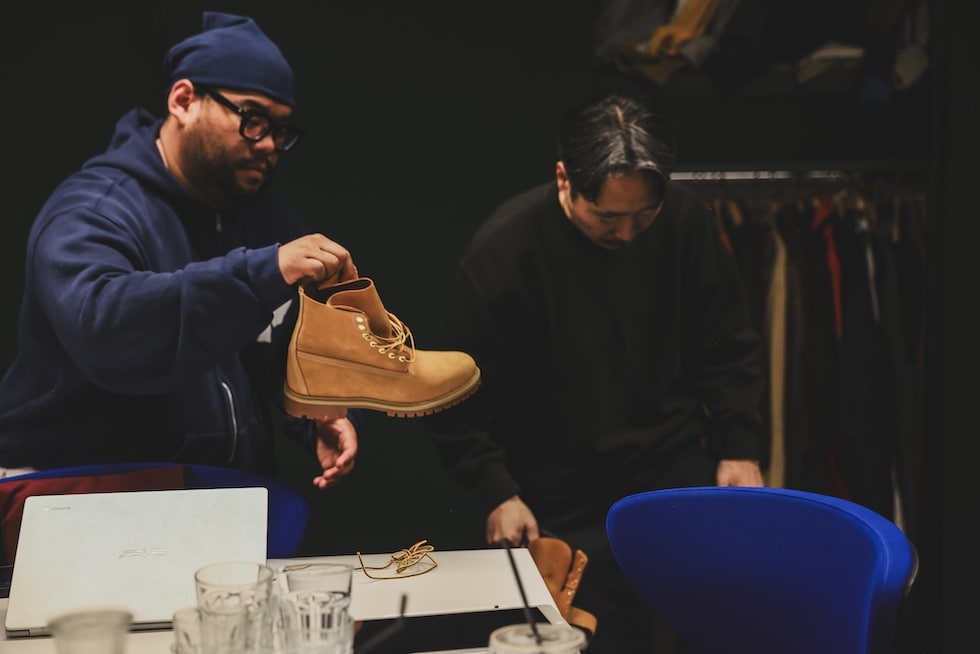 面白いのは、世代や文化の入口こそ違っても、最終的に全員の話が同じところへ収束していくこと。アメリカのリアルワークウェアとしての〈Timberland〉と、それをストリートが自分たちのものとして引き寄せてきた〈Timberland〉。その両方が“スタイル”として、〈BEAMS〉の中では矛盾なく同居している。だからこそ、過去の別注でも、ブランドの核をなおざりにして、新しさだけを狙うことはなかった。
