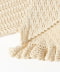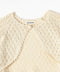 昨年好評だったニットボレロ。身頃と袖で異なる2種類の編み柄を組み合わせ、後ろ裾にはかぎ針編みのフリルを施したこだわりの新型デザインで登場です。バックスタイルに動きが出るシルエットに仕上げており、繊細な編み地がカジュアルな装いに女性らしい華やかさを添えてくれます。