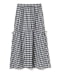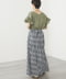 這款裙子輕盈的方格圖案非常惹眼。自由變化輪廓的拉繩設計增添了女人味。長度扎實的長版設計展現出時尚氣息。