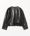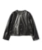 這款無領夾克衫使用了啞光質感的人造皮革。後身的下擺設計有褶皺,打造出具有立體感的輪廓。有重視使用方便性的黑色和給人以柔和女性印象的米白色兩種顏色可供選擇。您可以享受不同風格的搭配。