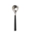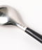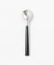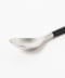 〈柳宗理〉設計的黑色圖案甜點勺。不銹鋼部分使用容易打理的18-8不銹鋼。柔軟舒適的曲線,木頭的花紋和不銹鋼的接合部分的美感極具魅力。這款單品兼備了實用性和設計性,讓人想要長年使用。有厚重感,也有高級感。黑色圖案的美麗經年變化的木紋和色調也極具魅力。