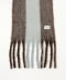 這款圍巾的亮點在於點綴頸部的線條配色。寬大的流蘇為搭配增添了嘻哈風格。只要圍上,臉部周圍就會給人幹練的印象。