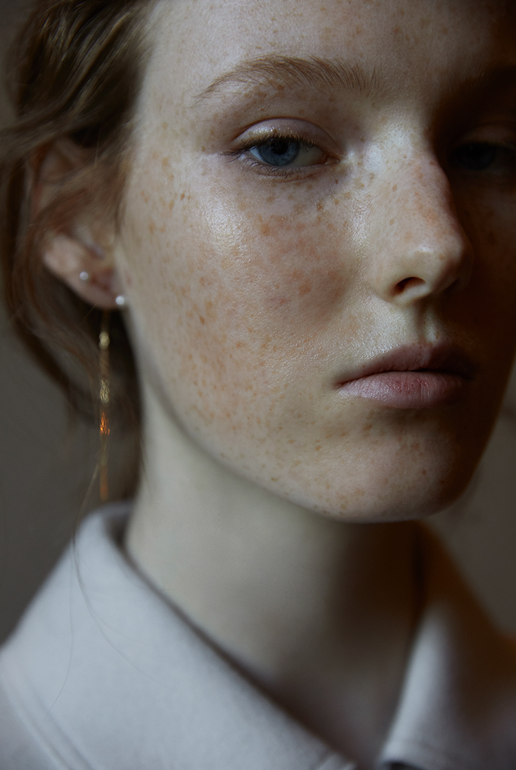 後れ毛からのぞくピアス