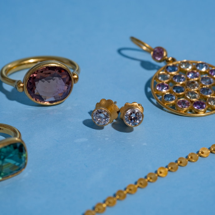 在印度邂逅了擁有傳統手法的頂級工匠們,於1996年發表了第一個係列,在造型睏難的珠寶界掀起了革命。被對顏色的熱情所驅使,最大限度地發揮出石頭本來的美的風格,作為日常佩戴的珠寶瞬間獲得成功。不拘泥於寶石和半寶石的區別,由印度的工匠精心手工制作的作品全部是一件,每一塊石頭都自豪地閃耀著光輝。