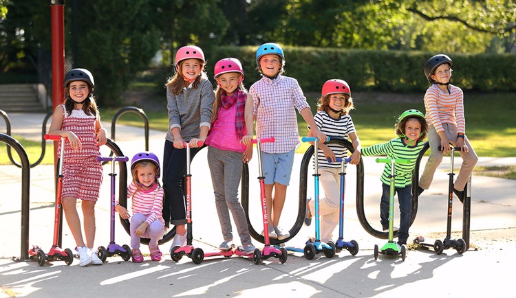 スイスの医療専門家の協力を得て開発され、こどものバランス感覚と運動神経の向上に役立つマイクロ社製の“キックボード&キックスクーター”。