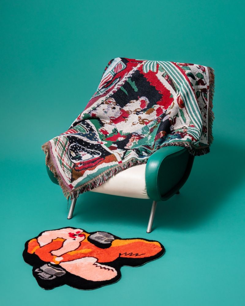此外,為了配合本次展覽,我們特別準備了一系列由TOKYO CULTUART by BEAMS生產的原創地毯、毛毯、羽絨外套和運動衫TOKYO CULTUART by BEAMS